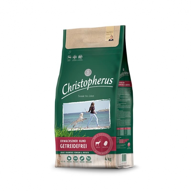 Christopherus Hirsch & Kartoffel ist ein getreidefreies, hochwertiges Hundefutter für ausgewachsene Hunde. Es ist ideal für Hunde mit Futterunverträglichkeiten, liefert hochwertige Proteine, Omega-3/6-Fettsäuren und unterstützt Immunsystem, Verdauung, Haut & Fell.