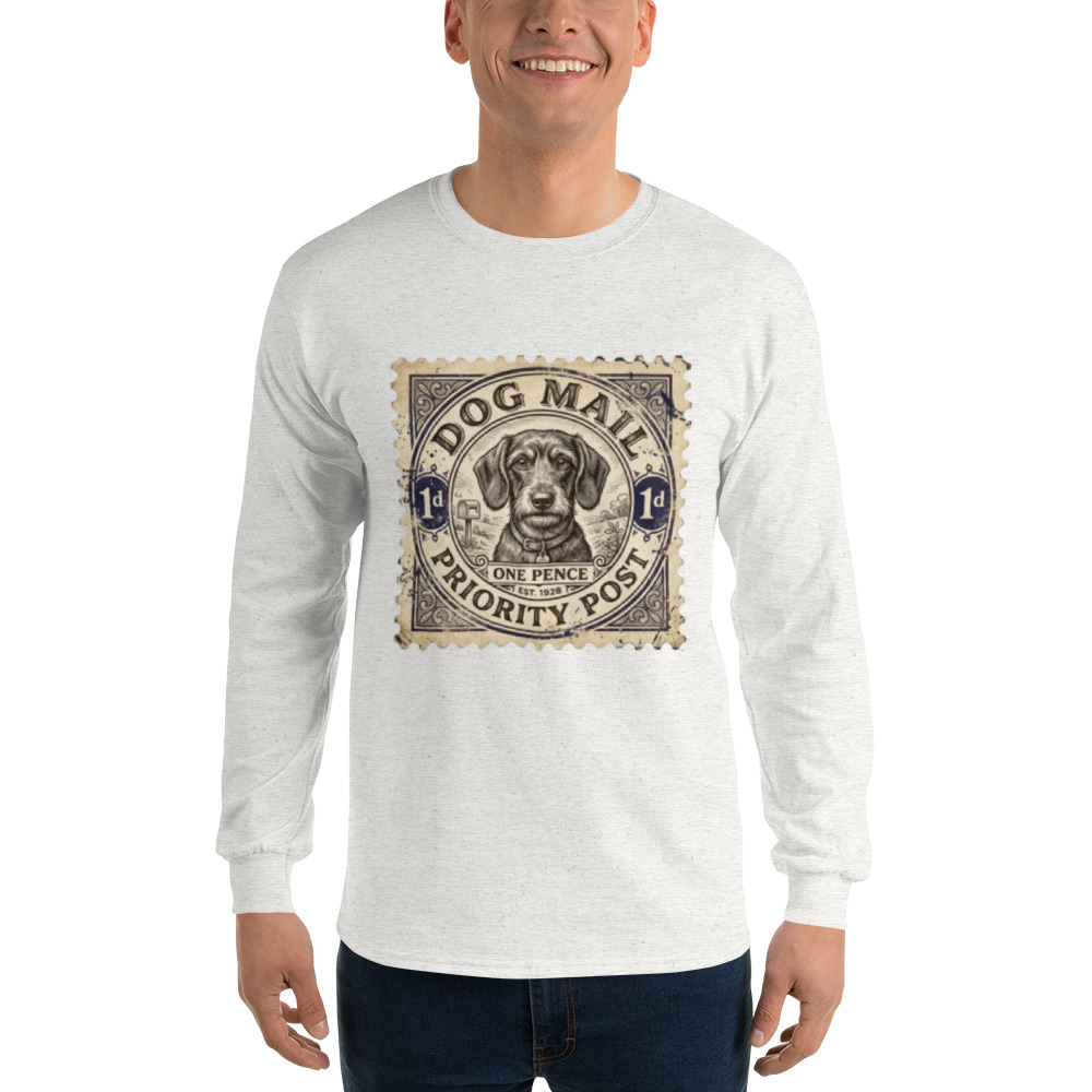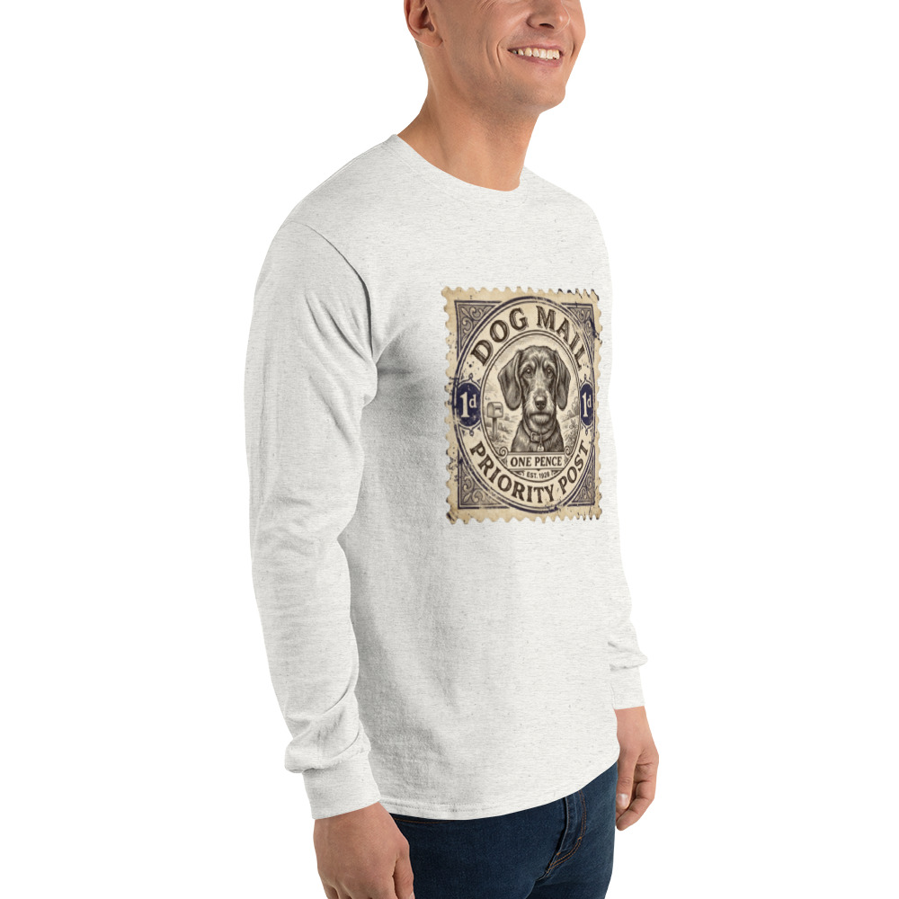 Ein Design, das Geschichten erzählt: Unser Herren-Langarmshirt in meliertem Ash Grey bringt den Charme vergangener Zeiten zurück. Der detailreiche Print im Look einer historischen Briefmarke setzt den Dackel als „Priority Post“ perfekt in Szene. Ein echtes Statement-Piece für alle, die ihren Humor und ihre Liebe zum Hund stilvoll zeigen möchten.