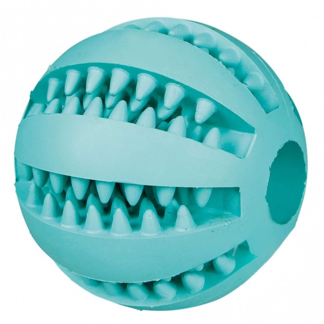 Pflegt Zähne und Zahnfleisch: Beim Kauen auf der strukturierten Oberfläche des Balls wird das Zahnfleisch massiert und die Durchblutung angeregt. Das Material hilft zudem, Zahnbeläge spielerisch zu reduzieren. Der Ball ist mit einem Minzgeschmack versetzt, was den Spielanreiz erhöht und für einen angenehm frischen Atem sorgt.