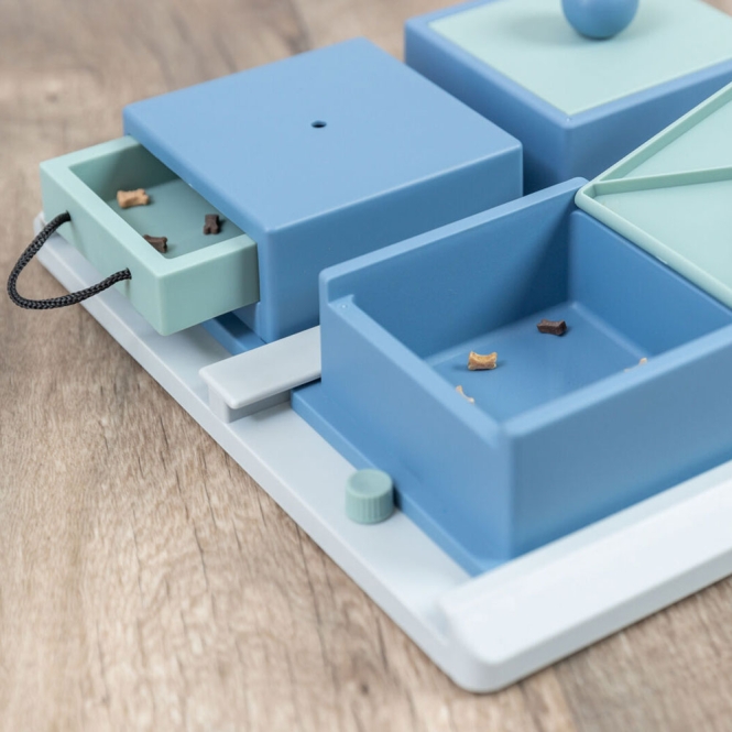 Dieses anspruchsvolle Spiel ist für Hunde jeglichen Alters geeignet und fördert nachhaltig die Konzentrationsfähigkeit und die Problemlösungskompetenz. Für einen sicheren Stand während des Trainings sorgen die rutschfesten Gummifüße. Die Reinigung ist dank der Spülmaschineneignung besonders einfach und hygienisch. Im Lieferumfang enthalten ist zudem ein hilfreiches Übungsheft, das wertvolle Tipps und Tricks für ein optimales und freudiges Training liefert.