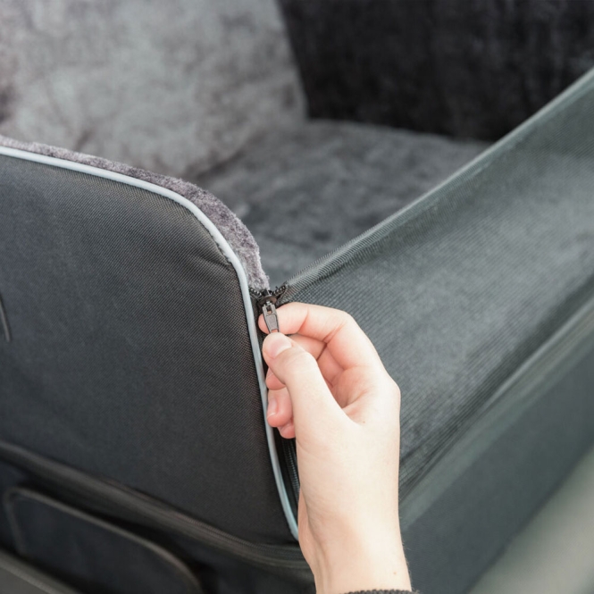 Für die nötige Stabilität im Fahrzeug sorgen die mitgelieferten Befestigungsgurte, mit denen der Sitz fest am Autositz fixiert wird. Dank der praktischen Gurtdurchführung können Sie Ihren Hund zudem mit einem geeigneten Geschirr direkt am Anschnallsystem des Autos sichern. Am Zielort angekommen, lässt sich der Sitz im Handumdrehen als gemütliches Reisebettchen weiternutzen.